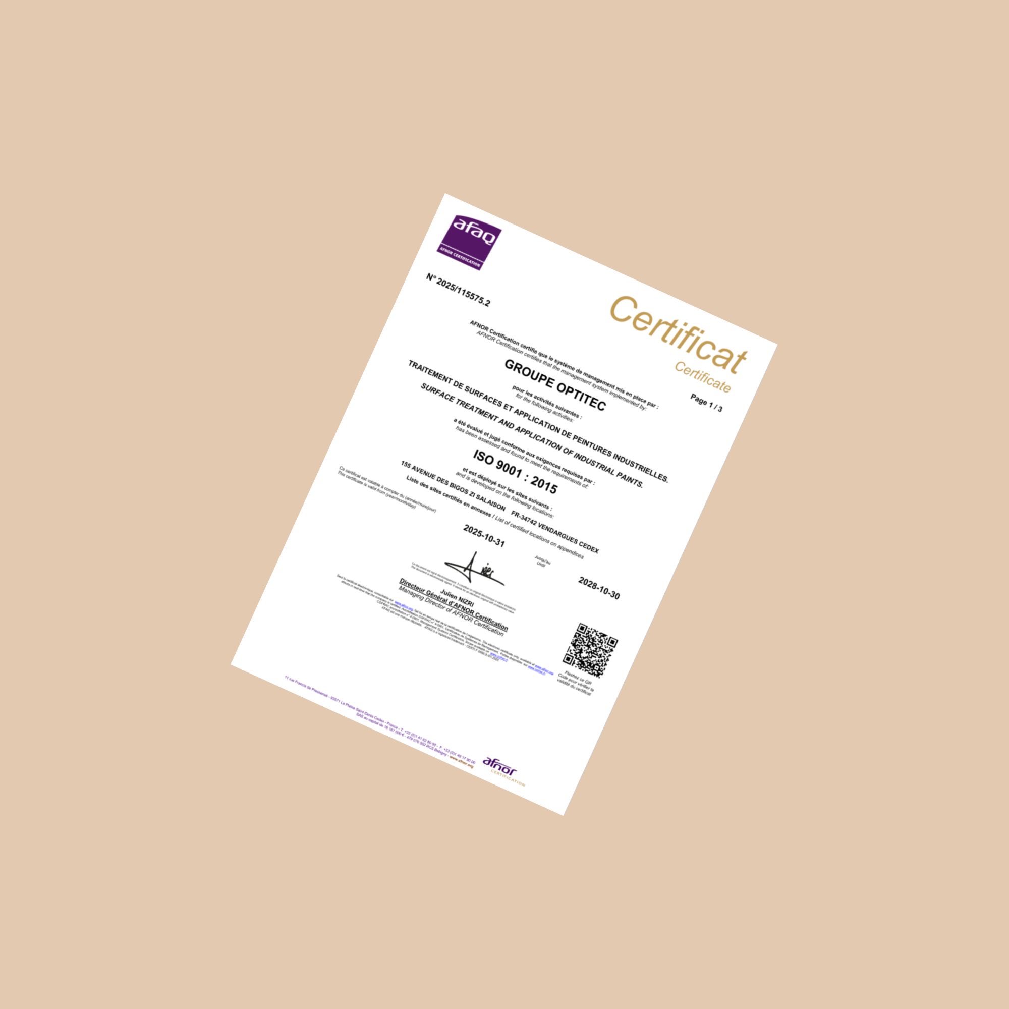 Plaquette Groupe Optitec de traitements de surfaces et applications de peintures industrielles.